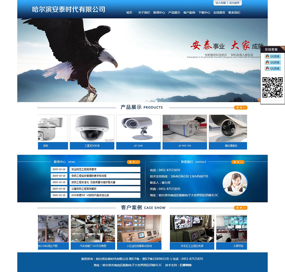 哈爾濱安泰時代科技有限公司是一家專業從事監控器材批發及監控攝像機、樓宇對講、報警等集成系統的安裝及調試、專業性的安防企業,主要為現代安防市場提供:海康、中維、漢邦、安泰、亮江南攝像機。